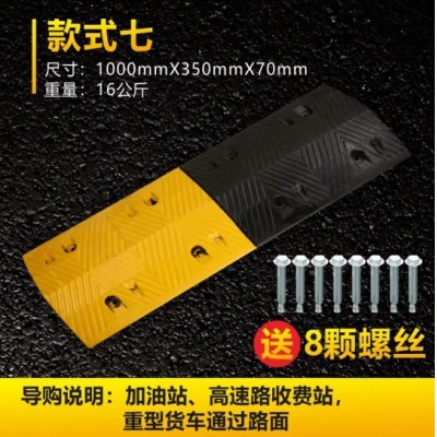 加厚公路道路坡道铸钢减速带限速缓冲带斜坡橡胶减速板交通线槽 橡胶减速带减速板(1000*350*70(带螺丝)