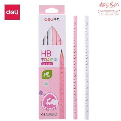 得力58141_三角杆HB书写铅笔12支(浅红)SKU:yzwhyp819611
