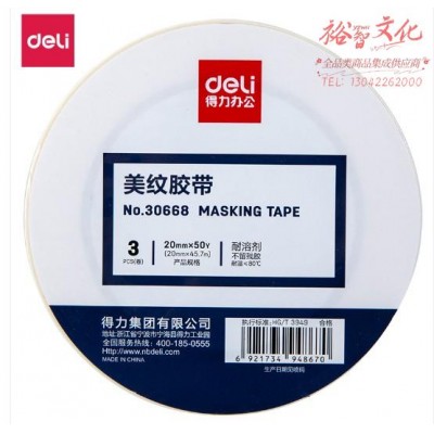 得力30668美纹纸胶带20mm*50y*145um(白色)(3卷/筒)SKU:yzwhyp819894