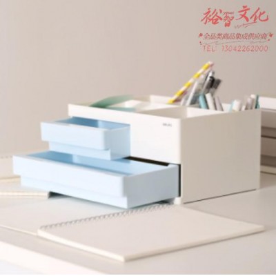 得力(deli) 8905 多功能桌面笔筒收纳盒 两格抽屉票据储物SKU:yzwhyp820125
