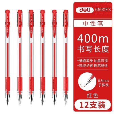 得力 6600ES 0.5mm中性笔 12支/盒 红色.SKU:yzwhyp820208