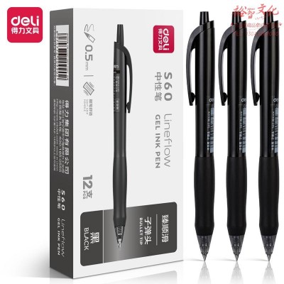 得力 S60臻顺滑办公中性笔0.5mm子弹头(黑)(支)SKU:yzwhyp820348