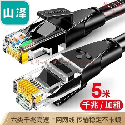 山泽(SAMZHE)六类网线 CAT6类千兆极速8芯双绞 工程家用电脑宽带监控电脑网络跳线成品网线 黑色5米 WD6050SKU:yzwhyp820373