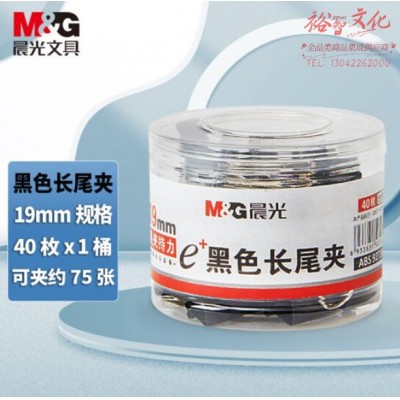 晨光ABS92736 Eplus黑色长尾夹19mm 40枚筒(筒装)SKU:yzwhyp820419