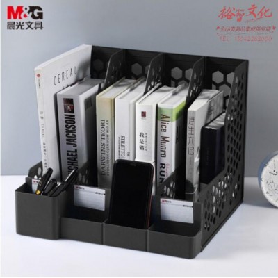 晨光(MG)ADM929R0 四联带笔筒收纳栏 桌面文件框 多功能镂空文件架 黑色SKU:yzwhyp820446