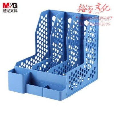 晨光(MG)ADM929R9 三联带笔筒收纳桌面文件框 多功能镂空文件栏 蓝色SKU:yzwhyp820537