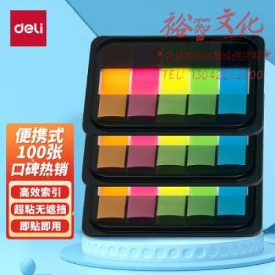 得力(deli)100张5色荧光膜指示标签贴 44*12mm抽取式便利贴便签条记事贴9060SKU:yzwhyp820579