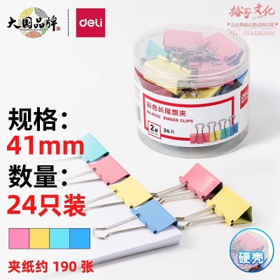 得力(deli)24只41mm彩色长尾夹票夹夹子 2#大号 8552SKU:yzwhyp820639
