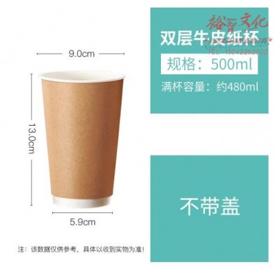 一次性 加厚双层牛皮纸杯 500ml 不带盖SKU:yzwhyp820694
