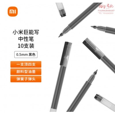 小米巨能写中性笔 10支装 黑色 0.5mm 商务办公中性笔会议笔SKU:yzwhyp820727