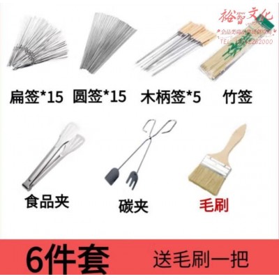 HITURBO烧烤工具全套辅助工具烧烤签子户外便携套装配件用品工具烧烤炉 【烧烤工具6件 送毛刷】SKU:yzwhyp820828