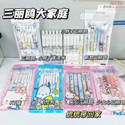三丽鸥限定ins高颜值按动中性笔卡通可爱风0.5mmST头少女心签字笔 6支装SKU:yzwhyp820830