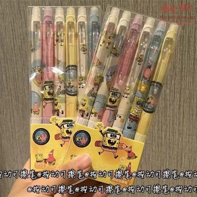 可爱海绵宝宝按动可擦笔热可擦ins风蓝色高颜值学生少女心中性笔 6支装SKU:yzwhyp820833