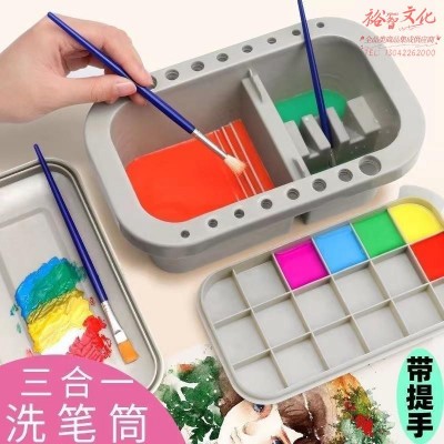多功能洗笔筒刷笔筒水粉水彩颜料调色盘绘画工具套装SKU:yzwhyp820861