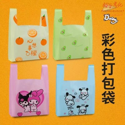 高颜值彩色购物塑料打包袋超市外卖便利店地摊文体店用包装袋加厚 100只装 小尺寸SKU:yzwhyp820880