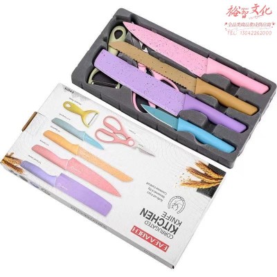 首页 > 用具 > 其他厨房用具 > 不锈钢小麦桔杆厨房水果刀6件套装切片刀剪刀瓜果刨面包刀礼盒装SKU:yzwhyp820917