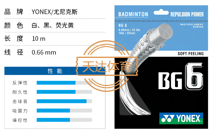 尤尼克斯/YONEX,羽线 BG 6,多色SKU:yzwhyp821205