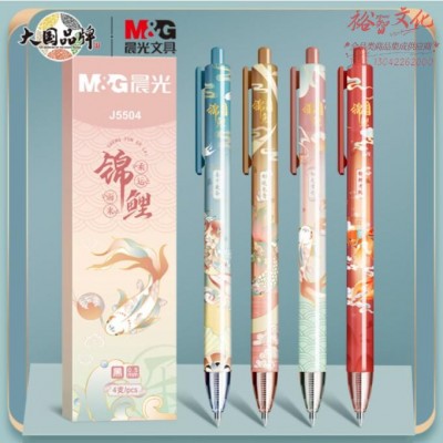 晨光(Mamp;G)文具0.5mm黑色速干中性笔 按动子弹头签字笔 锦鲤系列水笔 4支/盒AGPJ5504SKU:yzwhyp821231