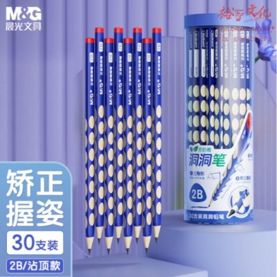 晨光(Mamp;G)文具铅笔2B洞洞铅笔30支 小学生练字铅笔 儿童正姿矫姿 三角木杆沾顶易抓握 开学礼物AWP30720SKU:yzwhyp821233