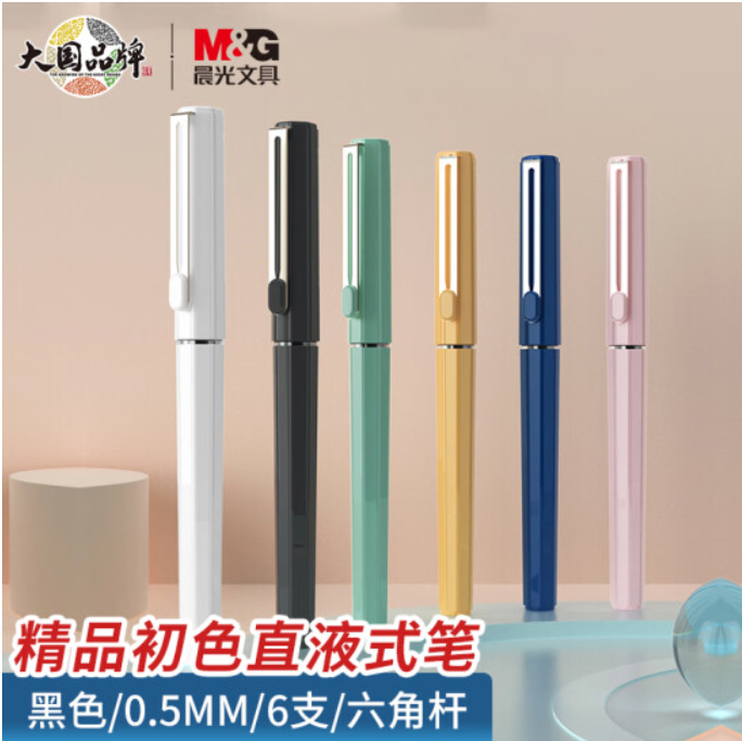 晨光文具0.5mm黑色直液笔速干中性笔 直液式走珠笔 初色系列签字笔水笔 开学必备6支装ARPB1810ASKU:yzwhyp821236