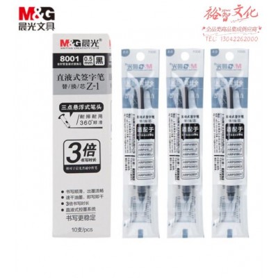 晨光文具0.5mm黑色直液式速干中性笔芯 学生考试签字笔替芯 优品系列水笔芯 10支/盒8001 WLSZ01312221509920SKU:yzwhyp821352