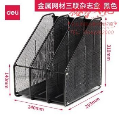 得力(deli)网状文件座文件架铁质多层文件收纳盒办公桌收纳书架桌上学生用桌面文具资料收纳置物架子 三栏金属文件座 9197SKU:yzwhyp821394