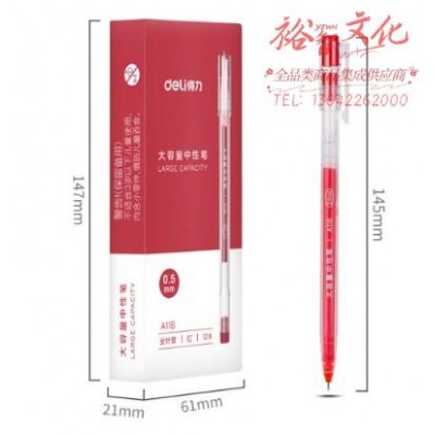 得力 A116 大容量中性笔0.5mm全针管(红)12支/盒 WLSZ01312247398552SKU:yzwhyp821834