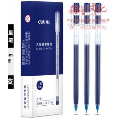 得力 大容量中性笔0.5mm全针管(蓝)12支/盒 WLSZ01312246463463SKU:yzwhyp821836