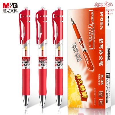 晨光文具K35/0.5mm红色中性笔 按动签字笔 经典子弹头红色水笔 12支/盒 WLSZ01312245548278SKU:yzwhyp821841