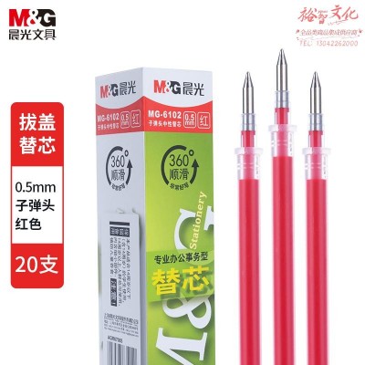 晨光文具0.5mm红色中性笔芯 子弹头笔芯 签字笔替芯 水笔芯 20支/盒 MG6102 WLSZ01312245107373SKU:yzwhyp821870