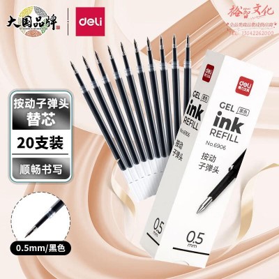 得力(deli)0.5mm按动中性笔芯 水笔签字笔替芯 子弹头20支/盒/黑/红/蓝 WLSZ01291410071688SKU:yzwhyp821973