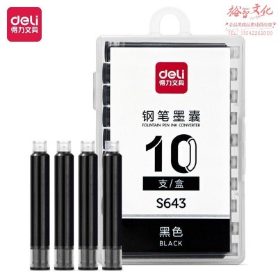 得力(deli)钢笔墨囊 学生钢笔墨水笔墨囊 可替换 10支/盒小包装 S643 黑/墨蓝/蓝 WLSZ01291408033131SKU:yzwhyp821974