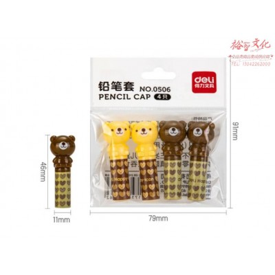 得力(deli) 铅笔套铅笔盖铅笔帽卡通款铅笔套 0506(4只/包) WLSZ01142101594776SKU:yzwhyp822095