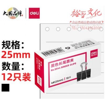 首页 > 办公用品 > 文具 > 得力(deli)25mm中号金属黑色长尾夹/票据夹/燕尾夹/铁夹子/文件夹子 12只/盒 9544 WLSZ01052236555923SKU:yzwhyp822466