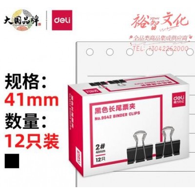 首页 > 办公用品 > 文具 > 得力(deli)41mm大号金属黑色长尾夹/票据夹/燕尾夹/票据文件夹子 2# 12只/盒 9542 WLSZ01052236244902SKU:yzwhyp822468
