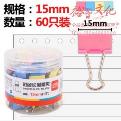 得力(deli)15mm彩色长尾夹票夹8556 6#金属燕尾夹票据夹子 60只/筒 WLSZ01031603197729SKU:yzwhyp822479
