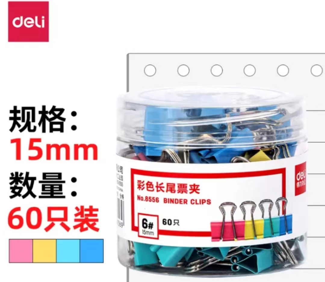 得力 8556 彩色长尾夹 15mm 60只/筒 WLSZ01021519181800SKU:yzwhyp822495