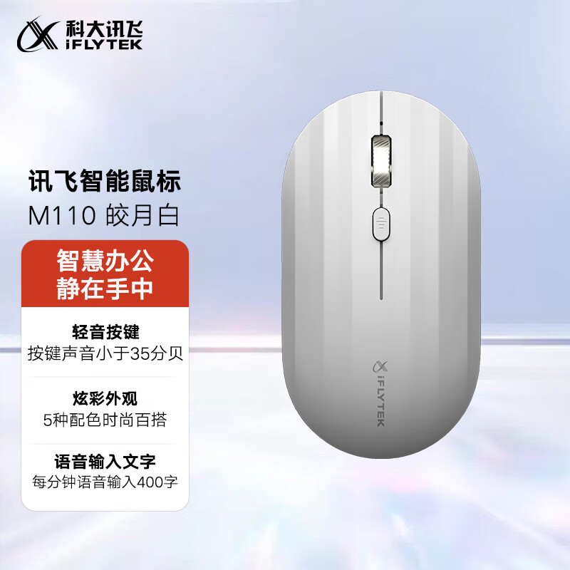 科大讯飞 智能鼠标 M110 语音鼠标无线办公静音鼠标语音输入 皎月白 WLSZ02191747194163SKU:yzwhyp823249