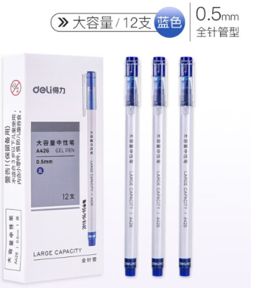 得力 学生中性笔0.5mm全针管(蓝)12支/盒 A426SKU:yzwhyp823310