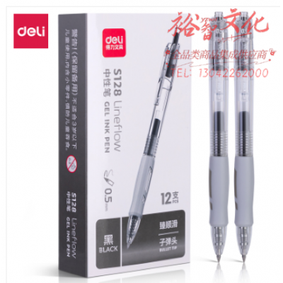 得力S128臻顺滑办公中性笔0.5mm弹簧头(黑)(支)SKU:YZB100847