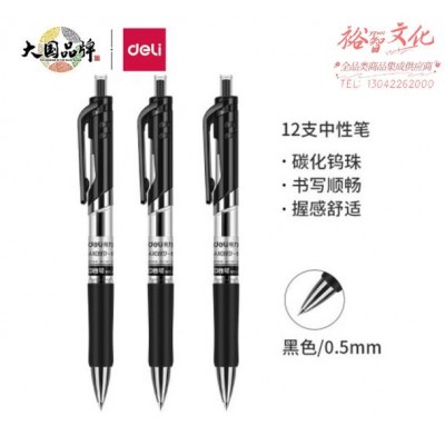 得力/deli S01中性笔 中性笔签字笔 0.5mm子弹头 经典办公 按动笔水笔 黑色 12支/盒 SKU:yzwhyp823539
