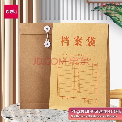 得力(deli)10只A4纯浆175g牛皮纸档案袋 侧宽4cm文件资料袋 票据收纳 5953SKU:yzwhyp823596