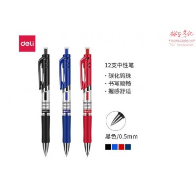 首页 > 办公用品 > 文具 > 得力(deli)S01中性笔中性笔签字笔 0.5mm子弹头经典办公按动笔水笔 黑色 12支/盒 SKU:yzwhyp823666