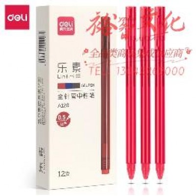 得力A120中性笔0.5mm全针管(红)12支/盒 SKU:yzwhyp823674