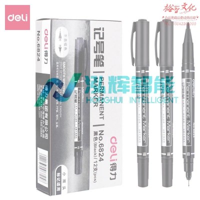 得力 6824 小双头记号笔 1.0-0.5mm 12支/盒 (单位:支) 黑 SKU:yzwhyp823764