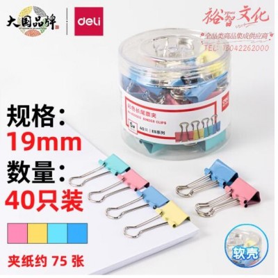 得力 8555 5#彩色长尾票夹19mm(筒装)(混)(40只/筒) SKU:yzwhyp823767