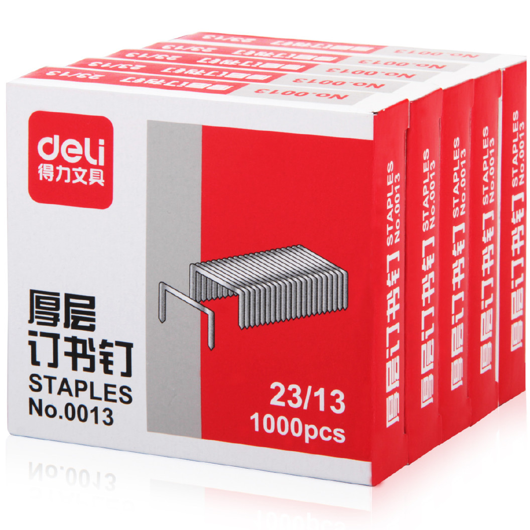 得力 0013 厚层钉书钉23/13 1000枚/盒 5盒/包(单位:包) SKU:yzwhyp824117