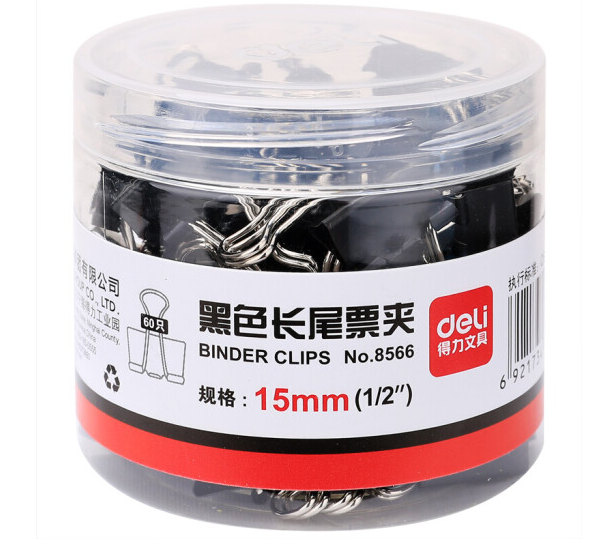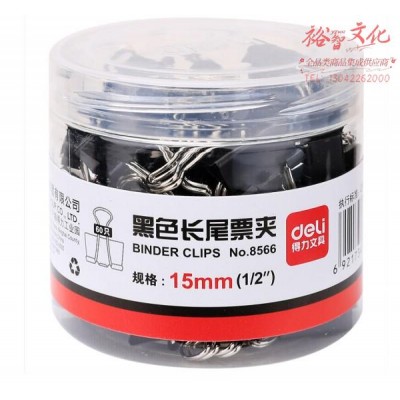 得力(deli) 黑色长尾票夹/鱼尾夹/资料试卷夹/夹子 15mm 60只/筒 单筒装 8566SKU:yzwhyp824165