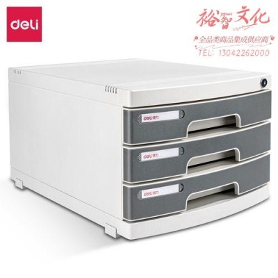 得力 8833 文件柜带锁桌面文件柜 (只) 浅灰色 SKU:yzwhyp824376