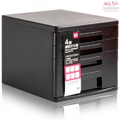 得力 9772 四层硬塑桌面文件柜 263x340x250mm (单位:只) 黑 SKU:yzwhyp824381